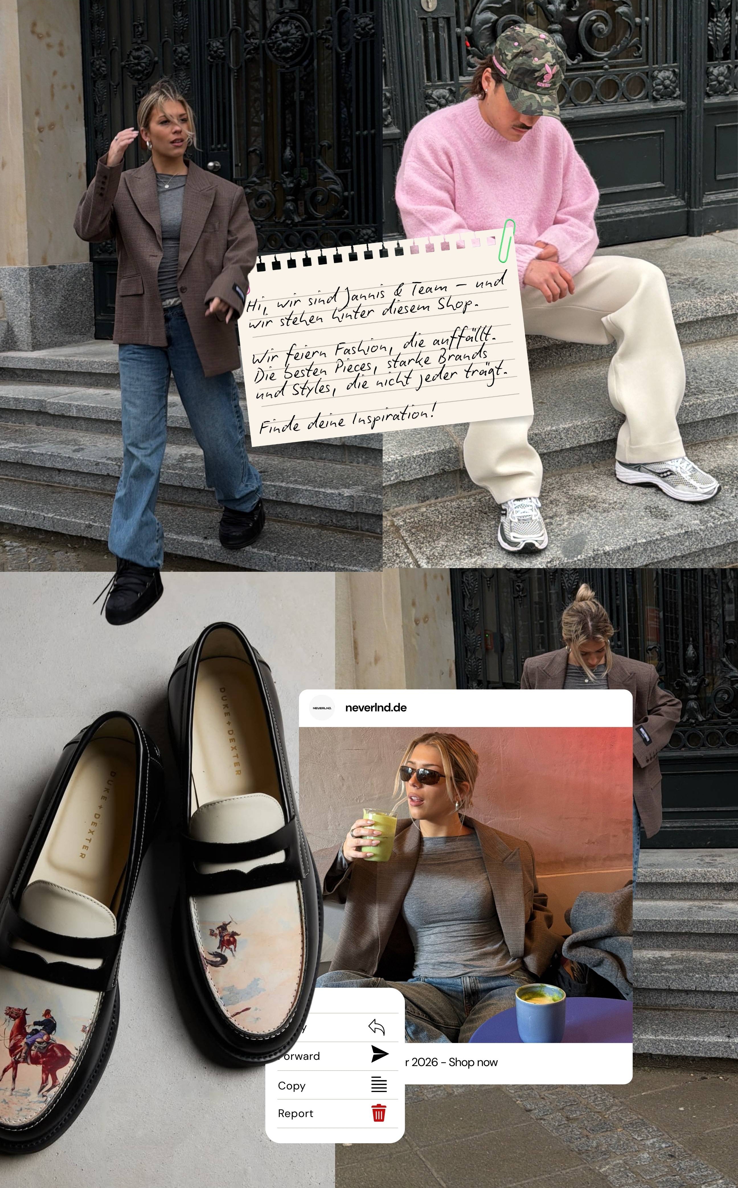 Neverlnd ist dein Filter in einer überladenen Fashionindustrie. Wir wählen Kollektionen so aus, dass sie den Zeitgeist treffen, und Raum für deinen eigenen Stil lassen, statt ihn vorzugeben.