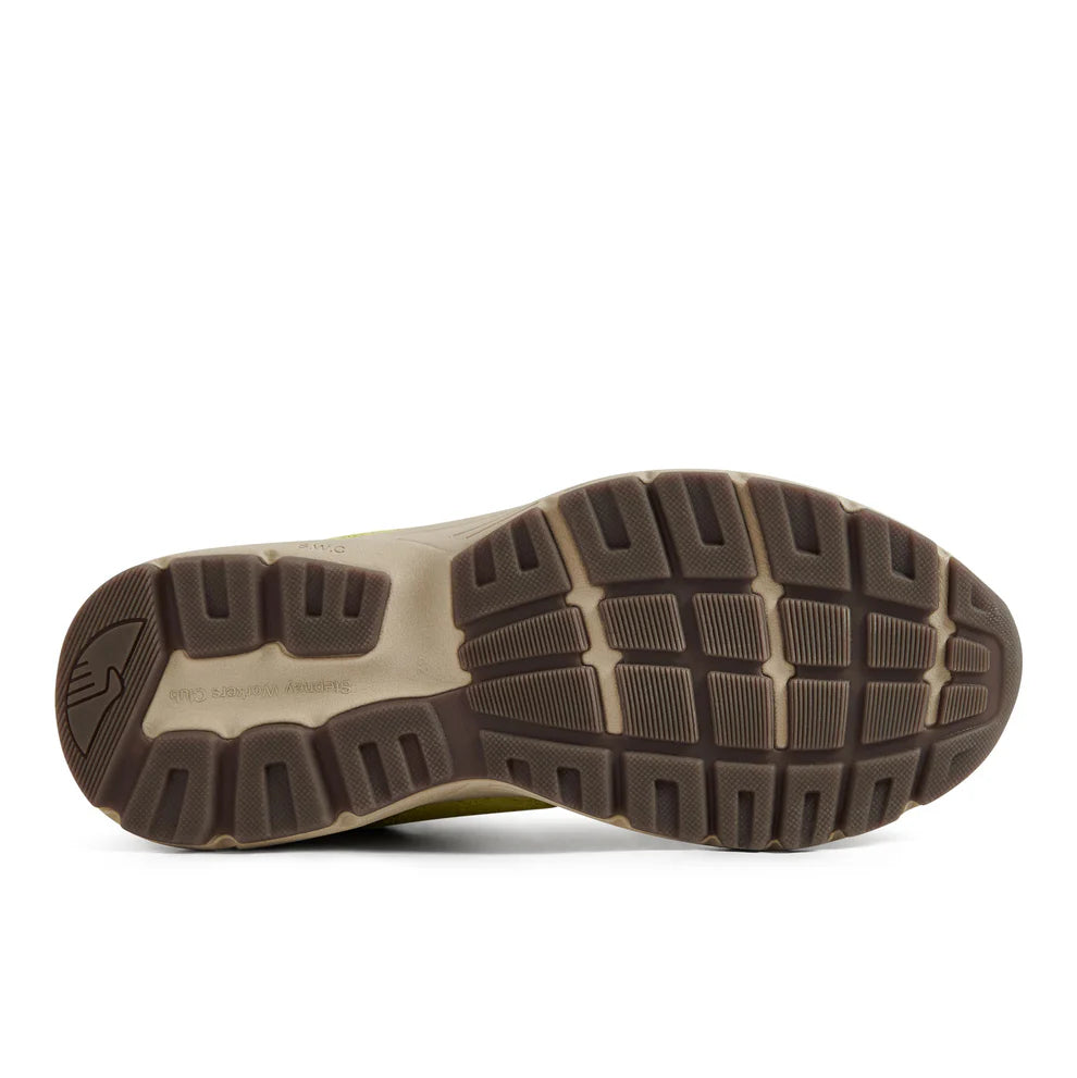 Unter dem Fuß bleibt die Sohle vom Geo-Merged -Prozess unberührt, um ein ausgewogenes Aussehen zu gewährleisten. Unsere Laufschuhsohle besteht aus einer komplexen, dreiteiligen, leichten Konstruktion mit einer gepolsterten EVA-Zwischensohle mit geringer Dichte, einer Stollensohle mit „Insel“-Profil und einer S-Strike TPU-Fersenstütze für Stabilität. Diese Konstruktion sorgt für einen bequemen und leichten Laufschuh für den täglichen Gebrauch.