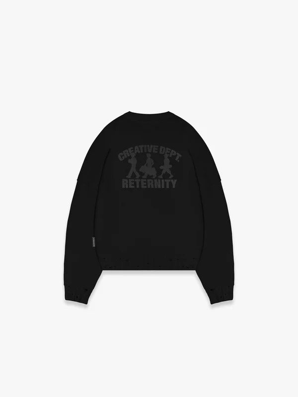 Unser CREATIVE DEPT LOGO KNIT SWEATER vereint erstklassige Handwerkskunst mit außergewöhnlichem Komfort. Ein schwarzer Print auf Vorder- und Rückseite setzt raffinierte Details, ergänzt durch das ikonische Reternity-Metallschild. Handgefertigte Destroyed-Effekte werten das Gesamtdesign auf und machen diesen Pullover ideal für Mitarbeiter der Kreativabteilung.