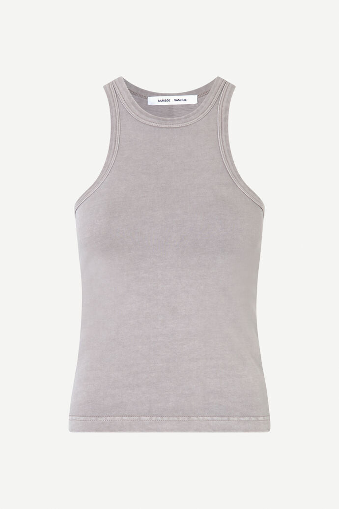 Schmal geschnittenes Racerback-Top mit Rundhalsausschnitt auf der Vorder- und Rückseite und hohem Halsausschnitt. Gerippte Bündchen mit Einfassung. 100% Bio-Jersey-Stoff mit Pigmentfarbe und verwaschener Optik.