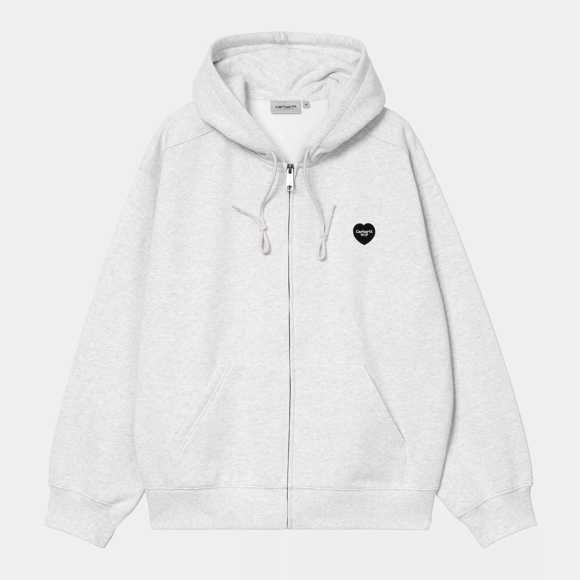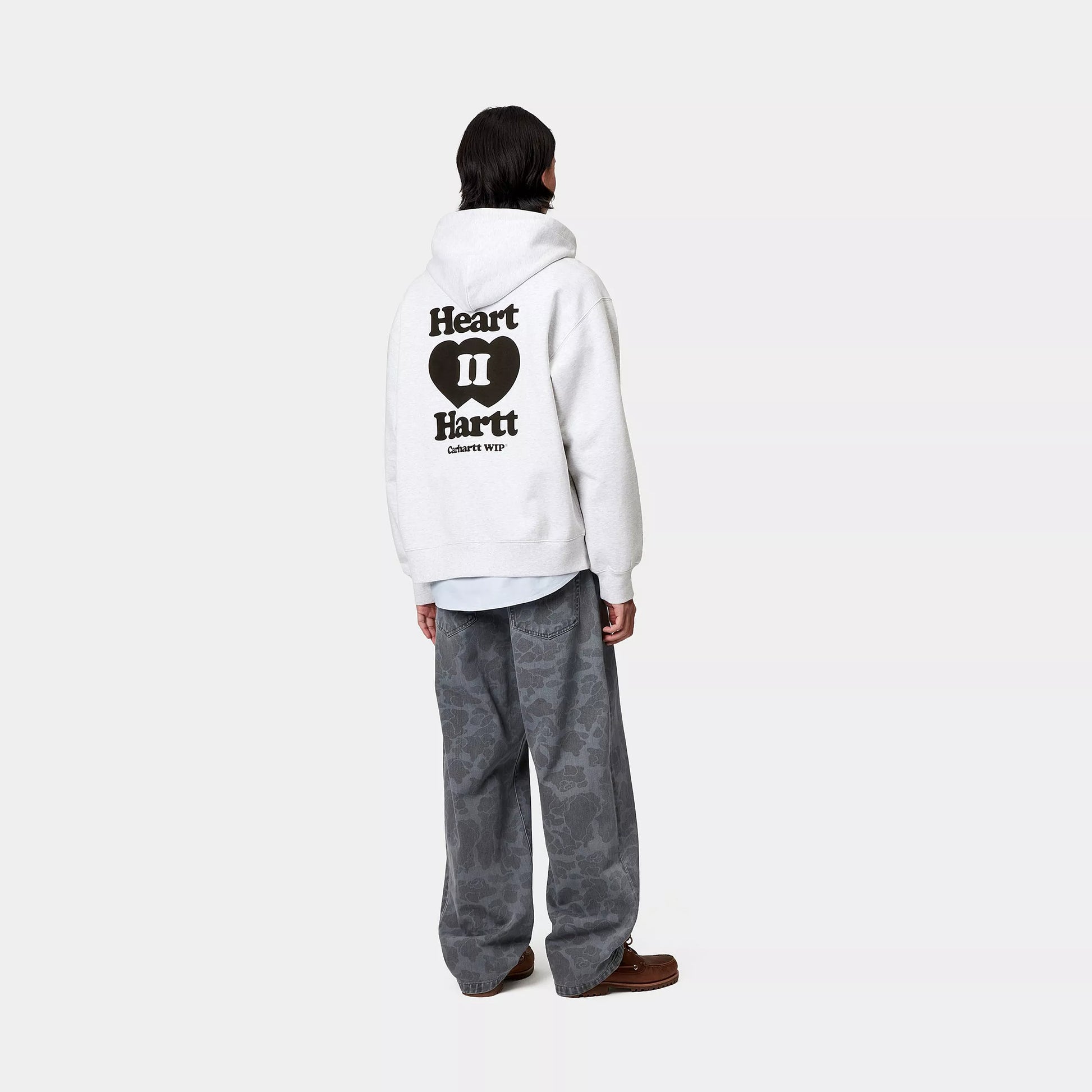 Die Hooded Heart II Hartt Sweat Jacket besteht aus einem schweren, gebürsteten Polyester-Baumwoll-Jersey mit Fleece-artiger Innenseite. Der Style hat eine Ballon-Passform, die etwas weiter und kastiger geschnitten ist mit abfallenden Schultern und gerippten Bündchen. Während auf der Brust ein gewebtes Heart Label angebracht ist, befindet sich auf dem Rücken ein Grafikprint.