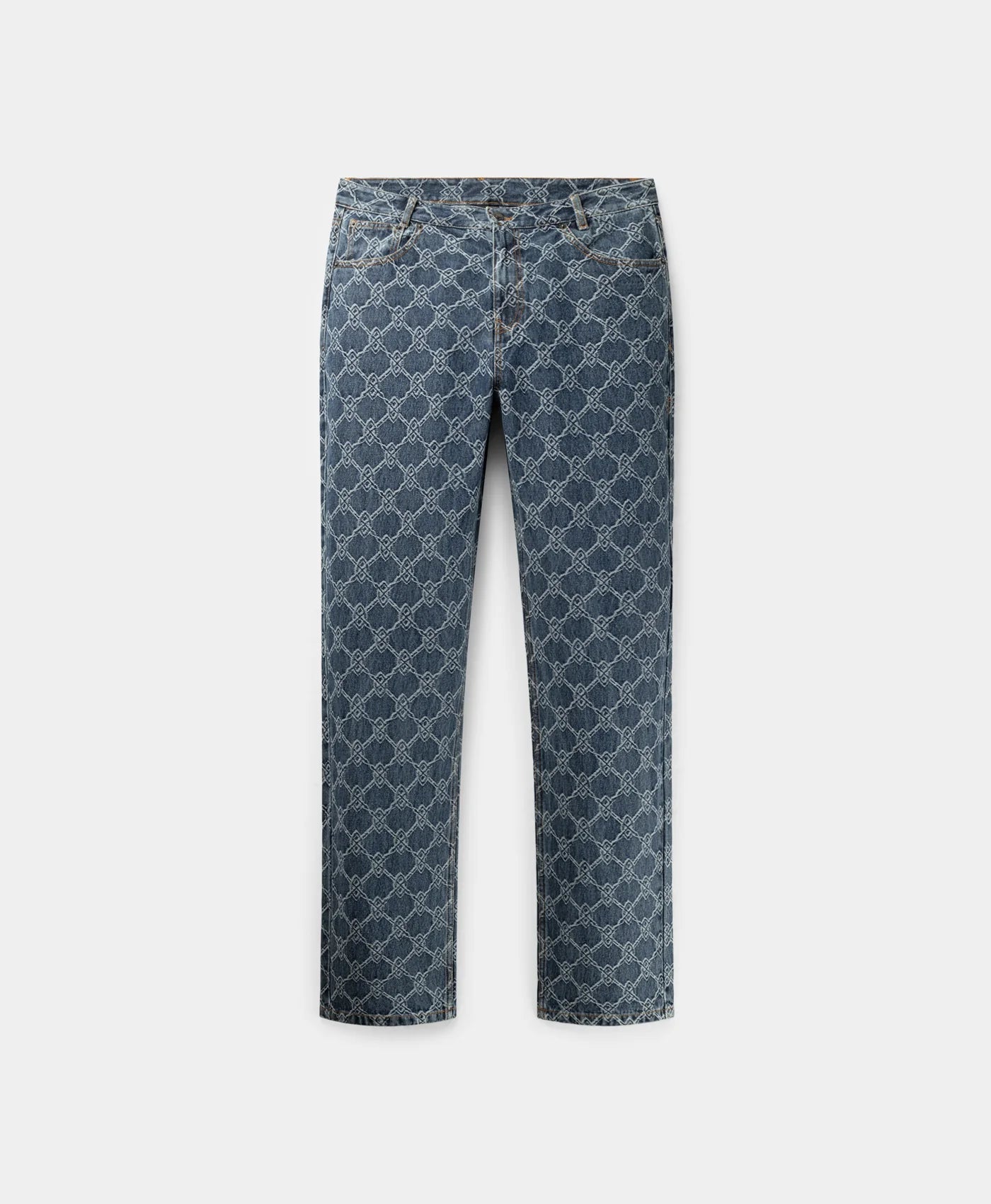 Unsere Rahul Shield Jeans ist aus einem maßgeschneiderten Denim-Jacquard mit Allover-Schilden gefertigt und verfügt über einen Knopf- und Reißverschluss mit Markenzeichen, Vorder- und Gesäßtaschen und ein Daily Paper Denim-Label. Kombinieren Sie sie mit der passenden Rahul Shield Jacke für einen kompletten Denim-on-Denim-Look.