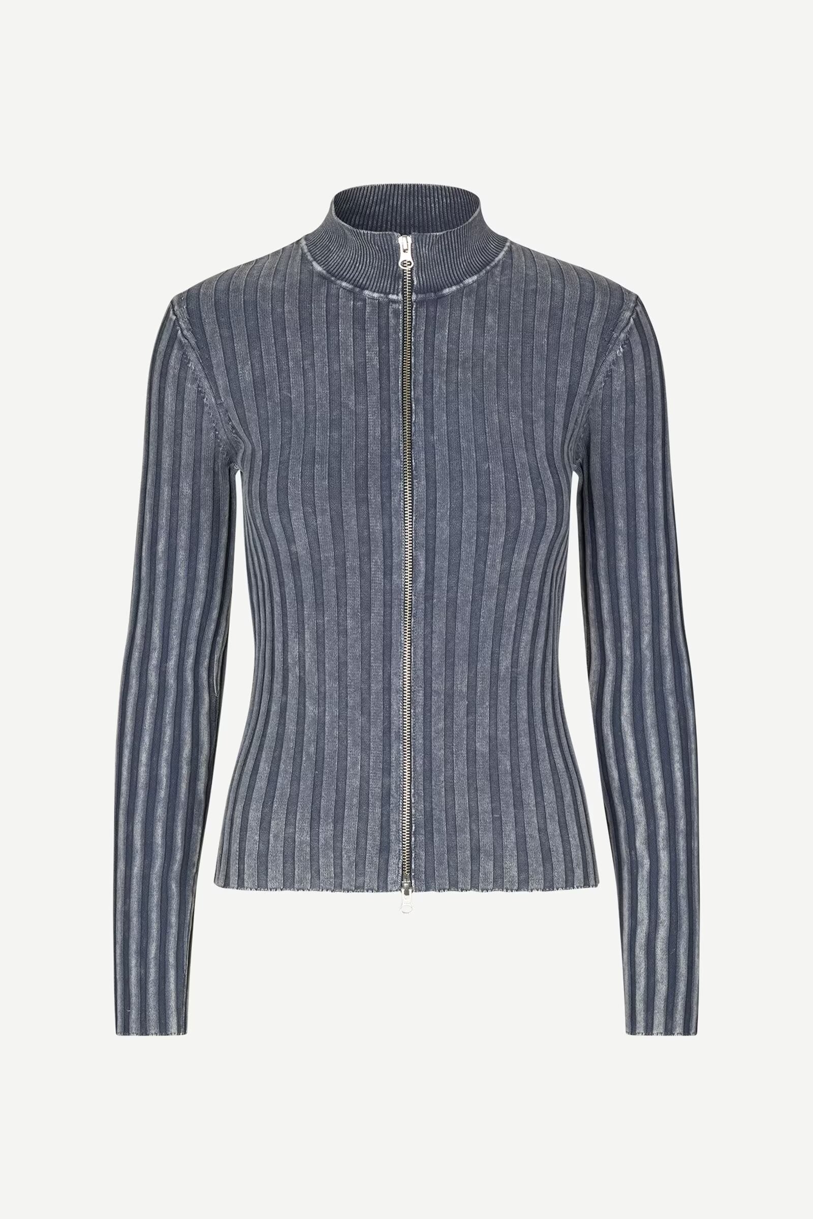 Strickjacke aus Rippenstrick mit schmaler Passform. Reißverschluss auf der Vorderseite. Hoher Halsausschnitt. Verwaschener Look. Hauptmaterial aus 100 % Bio-Baumwolle.