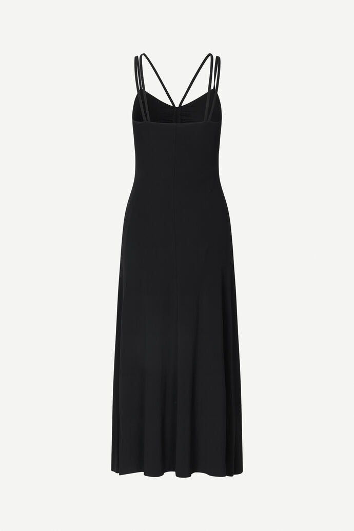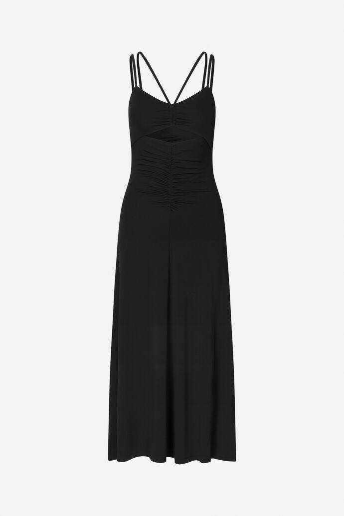 Midikleid aus Jersey mit schmaler Passform und A-Linien-Silhouette. Schmale Riemen. Elastischer Rücken. Gerüschte Details und Ausschnitt auf der Vorderseite.