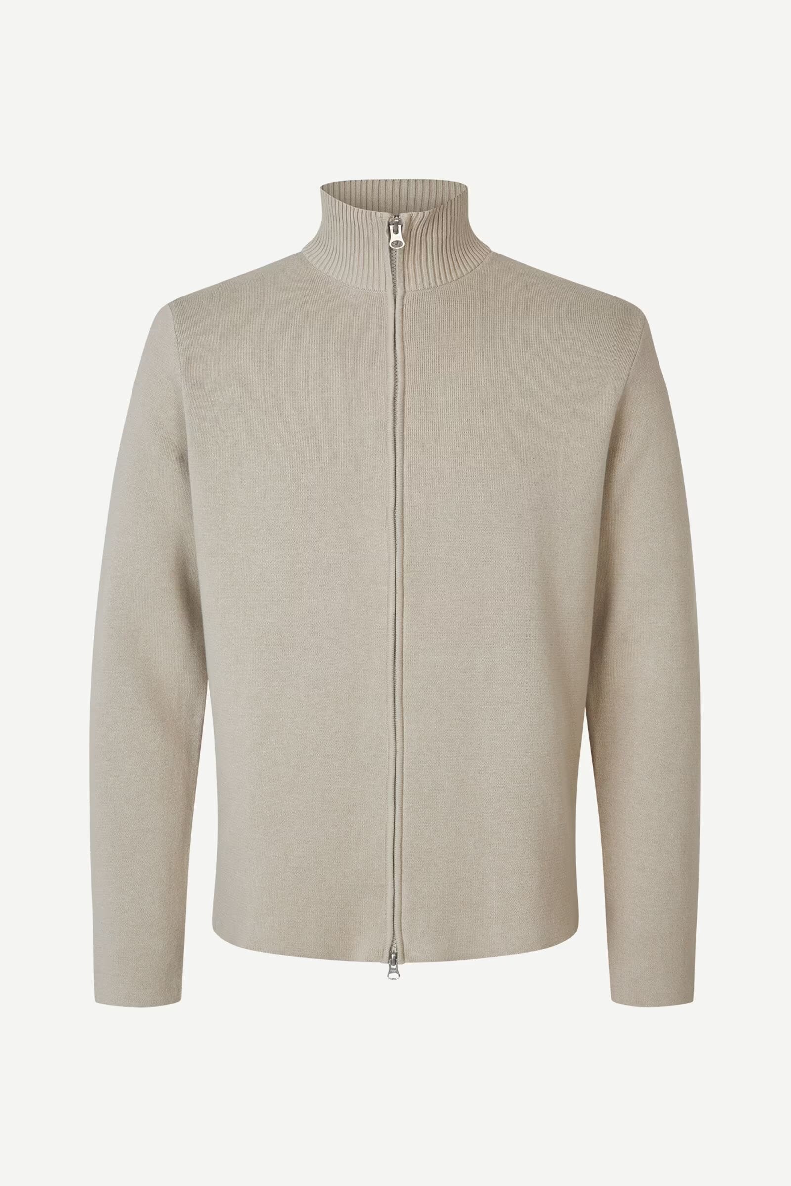 Cardigan mit normaler Passform. Zwei-Wege-Reißverschluss auf der Vorderseite. Kragen aus Rippstrick. Hoher Hals. Hauptmaterial aus Biobaumwoll-Mischgewebe.