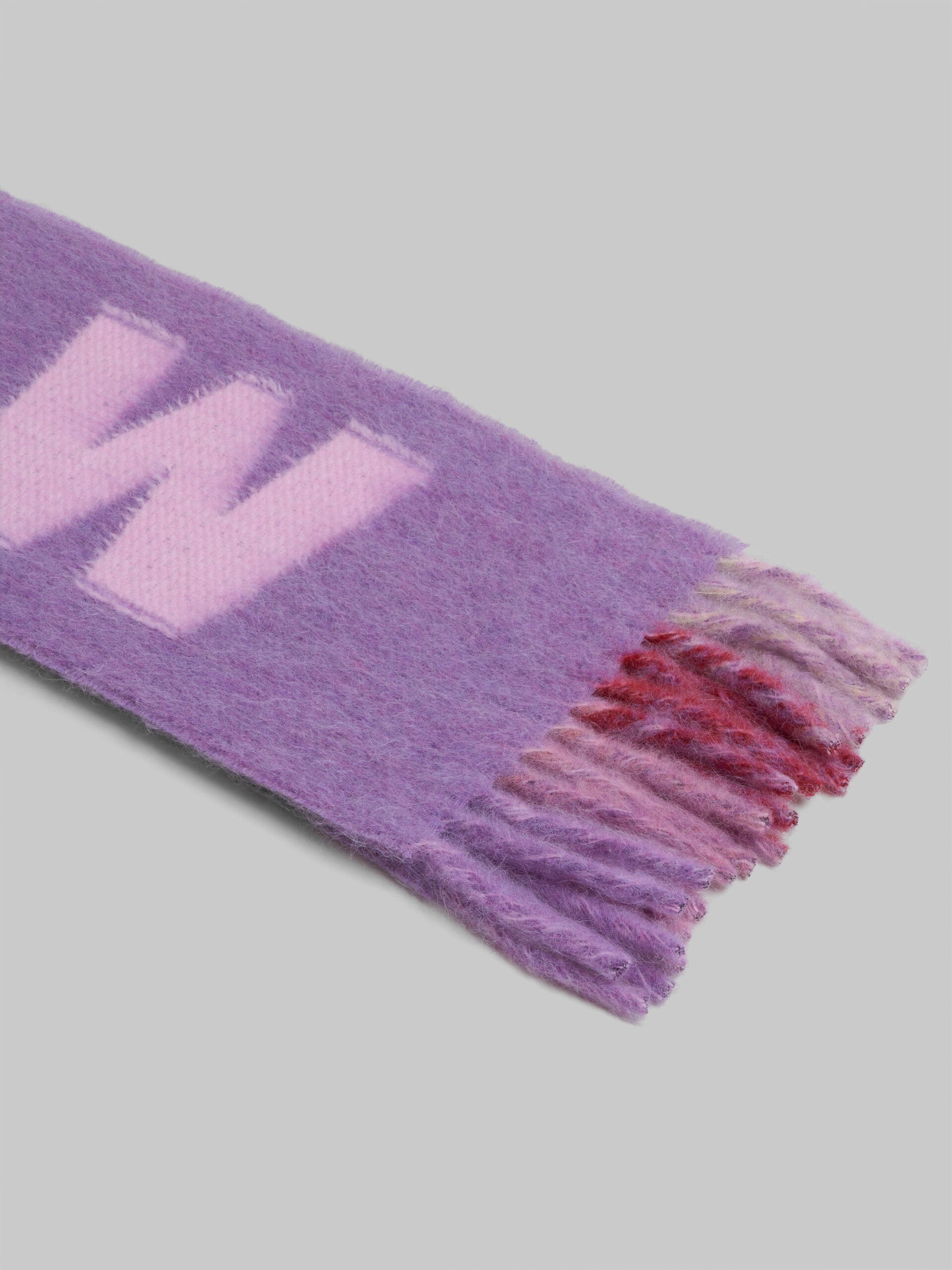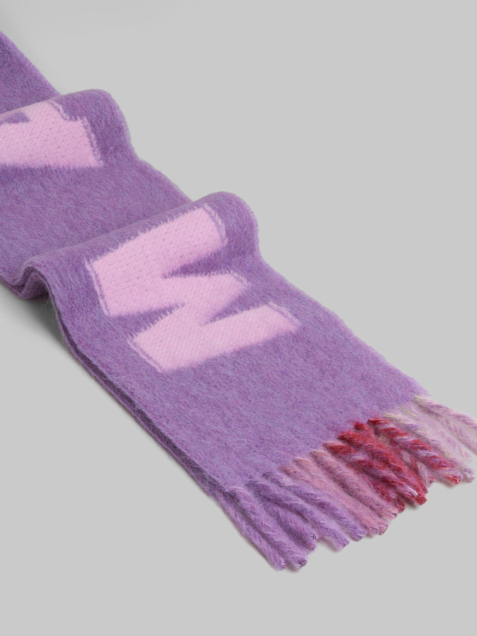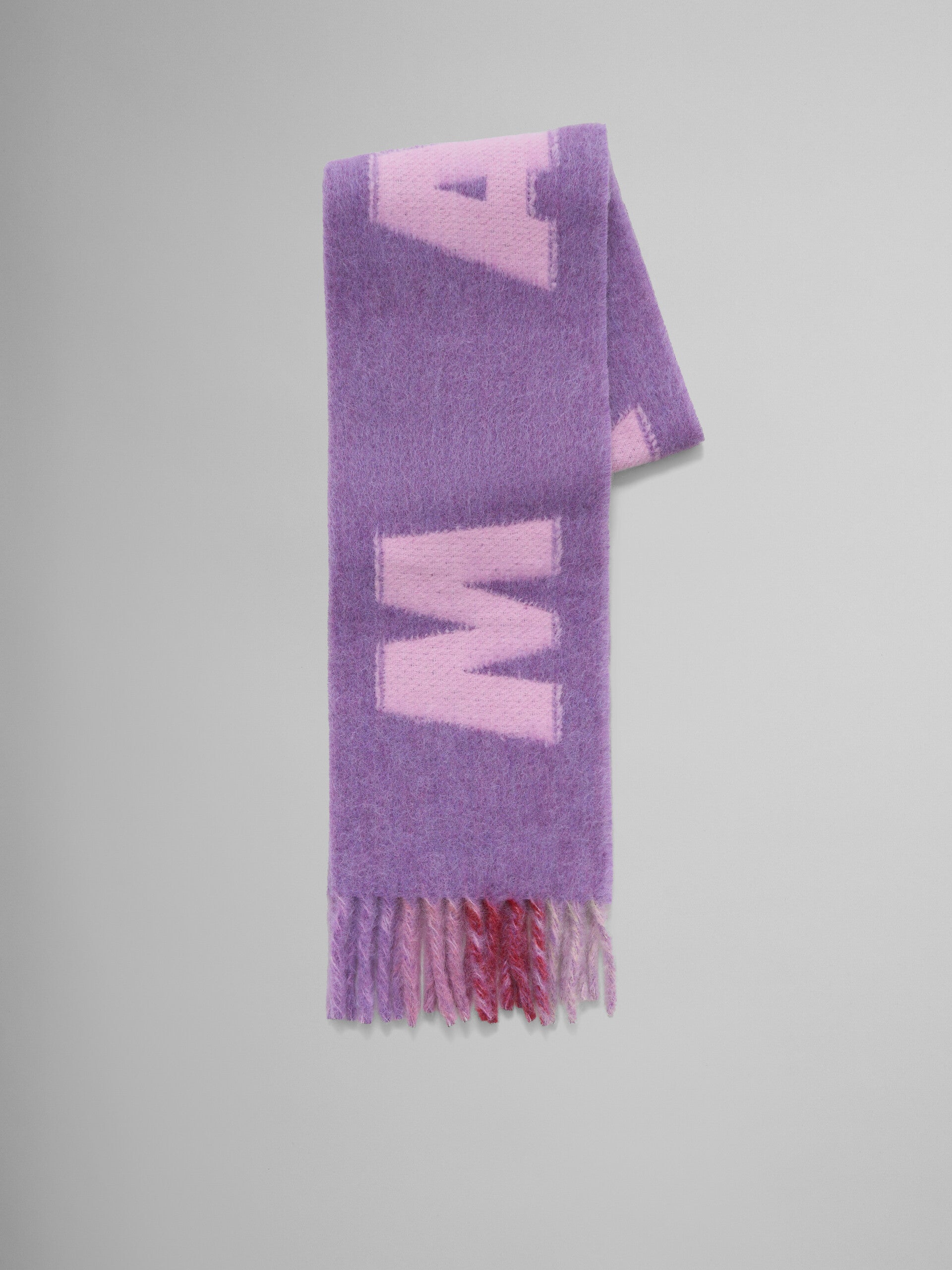 Breiter Schal aus einem weichen Mohair-Alpaka-Mix. Kontrastierende Rückseiten- und Dégradé-Fransen. Marni-Schriftzug im Maxi-Format. Hergestellt in Italien