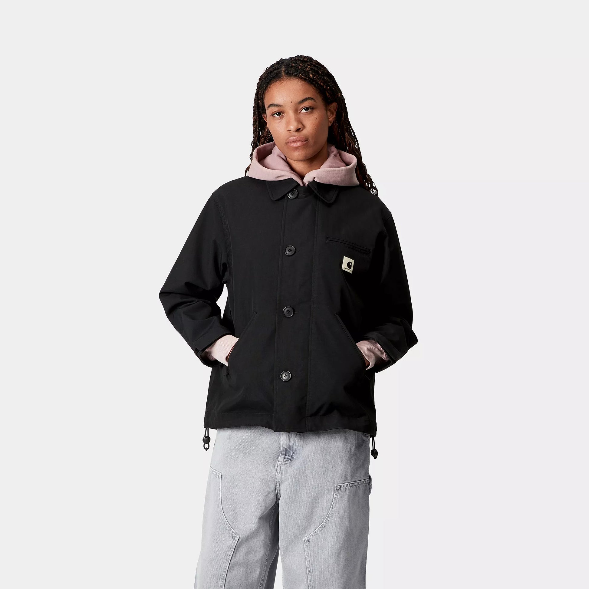 Die Women's Barnett Jacket besteht aus einem gefütterten, mittelschweren Nylon-Canvas mit wasserabweisenden Fähigkeiten. Der Style hat eine leichte A-Linien-Silhouette, die am Saum und den Manschetten verstellbar ist. Auf der Vorderseite befinden sich drei Eingrifftaschen mit Reißverschlüssen. Ein gewebtes Square Label rundet das Design ab.
