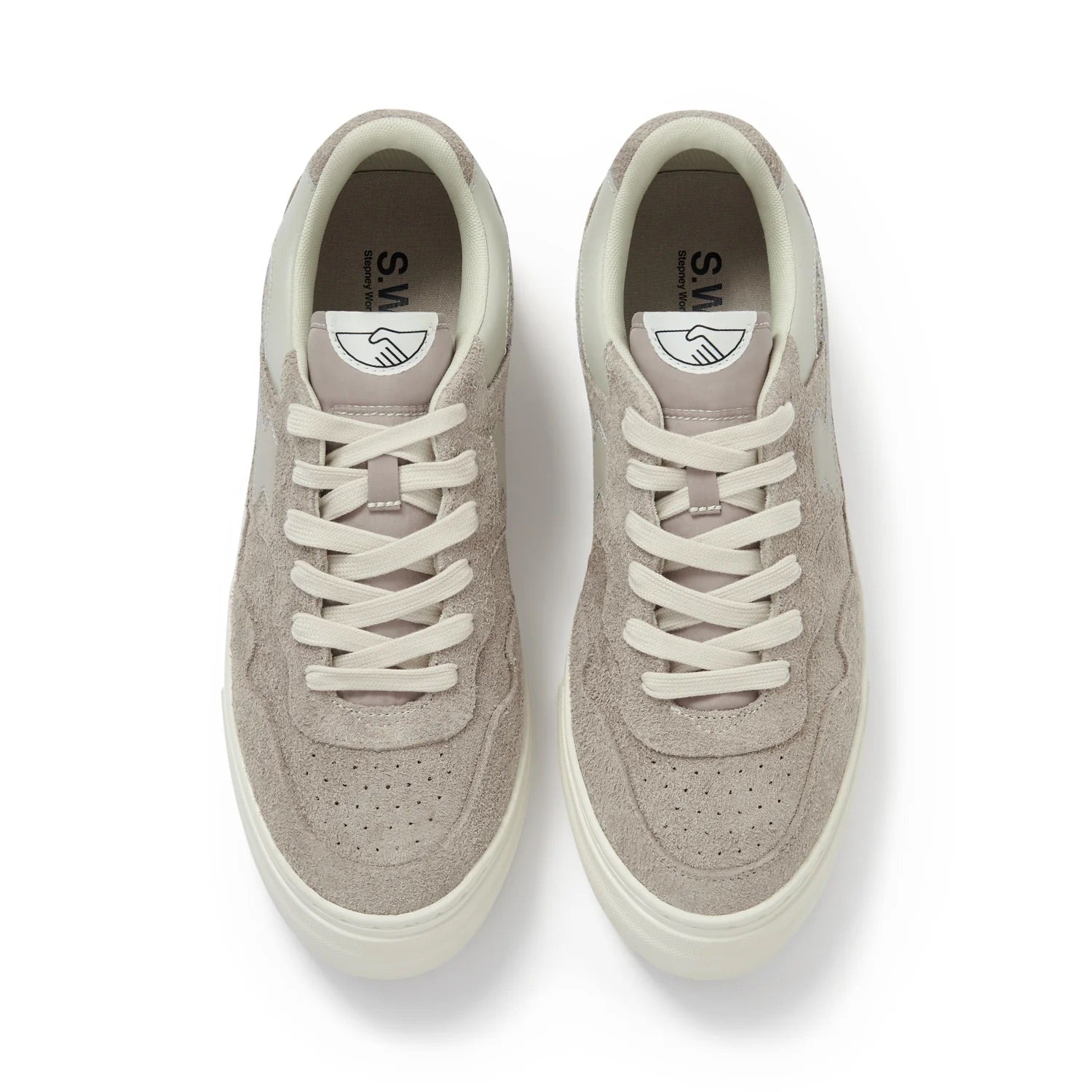 Der PEARL S-STRIKE verfügt über unsere neue Cupsohlen-Konstruktion und ist von Court-Sport-Sneakern inspiriert, dabei aber auf die ikonischen Proportionen und Silhouette von SWC übertragen. Die Cupsohlen-Konstruktion bietet im Vergleich zu vulkanisierten Sohlen mehrere Vorteile: